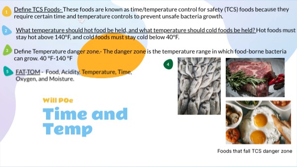Define TCS Foods- These foods are known as time/temperature control for safety (TCS) foods because they require certain time and temperature controls to prevent unsafe bacteria growth.