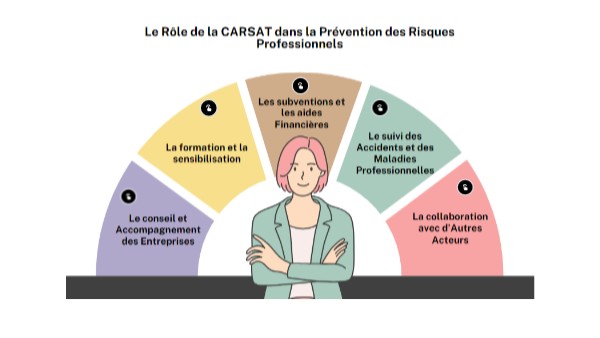L'évaluation des risques : La CARSAT assiste les entreprises dans l'évaluation des risques professionnels. Elle aide à l'identification des dangers présents sur les lieux de travail et à l'évaluation de leur gravité, contribuant ainsi à la mise à jour du Document Unique d'Évaluation des Risques Professionnels (DUERP). Les conseils personnalisés : Elle fournit des conseils techniques et organisationnels aux employeurs pour la mise en place de mesures de prévention adaptées à leurs activités spécifiques. Les experts de la CARSAT visitent les entreprises pour proposer des solutions concrètes afin de réduire les risques identifiés.