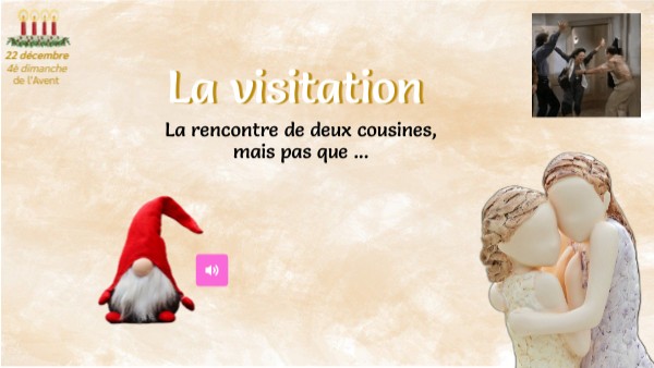 Evangile de Jésus-Christ selon Saint Luc - Luc 1, 39-45 "En ces jours-là, Marie se mit en route rapidement vers une ville de la montagne de Judée. Elle entra dans la maison de Zacharie et salua Elisabeth. Or, quand Elisabeth entendit la salutation de Marie, l’enfant tressaillit en elle. Alors, Elisabeth fut remplis d’Esprit Saint, et s’écria d’une voix forte : « Tu es bénie entre toutes les femmes, et le fruit de tes entrailles est béni. Comment ai-je ce bonheur que la mère de mon Seigneur vienne jusqu’à moi ? Car, lorsque j’ai entendu tes paroles de salutation, l’enfant a tressailli d’allégresse au-dedans de moi. Heureuse celle qui a cru à l’accomplissement des paroles qui lui furent dites de la part du Seigneur. »