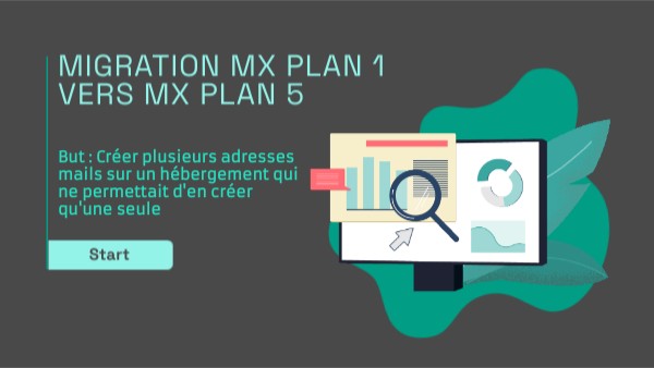 Autres services mails ? Regarder les MX dans la zone DNS. Si l'on voit d'autres cibles qu'OVH, comme des MX Google, on peut éviter de racheter un mx5 et donc de faire cette migration Le partenaire à sauvegarder ces mails ? Il va falloir supprimer son adresse mail dans un premier temps, pour la re-créer ensuite. Il faut donc que le partenaire sauvegarde ces mails avant. Si il avait une redirection en place, il n'y a pas besoin de faire une sauvegarde puisque ces mails sont déjà sur une autre adresse Avez vous récupéré une adresse mail secondaire du partenaire au cas où ?