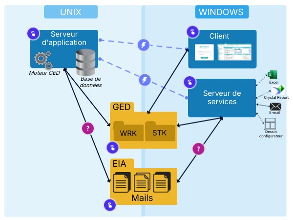 La GED peut être stockée côté Unix ou Windows. Ca n'a aucune importance tant que les accès décrits ci-dessus sont respectés.