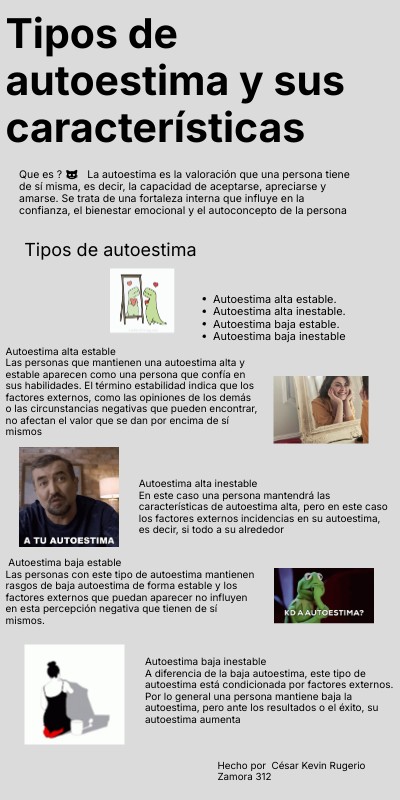 Autoestima alta inestable En este caso una persona mantendrá las características de autoestima alta, pero en este caso los factores externos incidencias en su autoestima, es decir, si todo a su alrededor