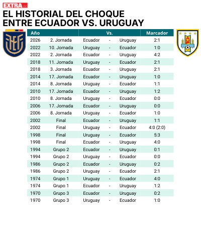 EL HISTORIAL DEL CHOQUE ENTRE ECUADOR VS. URUGUAY