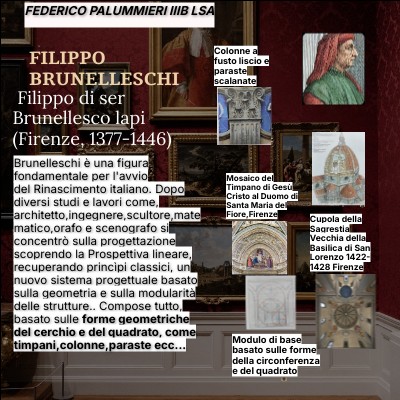 Brunelleschi è una figura fondamentale per l'avvio del Rinascimento italiano. Dopo diversi studi e lavori come, architetto,ingegnere,scultore,matematico,orafo e scenografo si concentrò sulla progettazione scoprendo la Prospettiva lineare, recuperando princìpi classici, un nuovo sistema progettuale basato sulla geometria e sulla modularità delle strutture.. Compose tutto, basato sulle forme geometriche del cerchio e del quadrato, come timpani,colonne,paraste ecc...