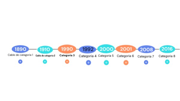 El cable categoria 8 se creo en 2016.especificaciones: admite una frecuencia de hasta 2 GHz, y admiten una velocidad de 25Gbps o incluso 40 Gbps.