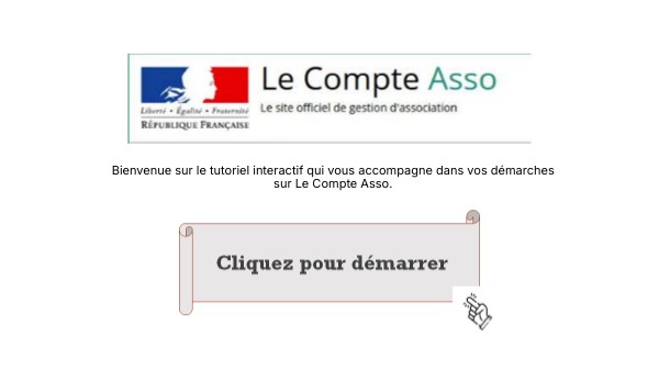 Bienvenue sur le tutoriel interactif qui vous accompagne dans vos démarches sur Le Compte Asso.