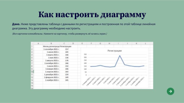 Дано. Ниже представлены таблица с данными по регистрациям и построенная по этой таблице линейная диаграмма. Эту диаграмму необходимо настроить.