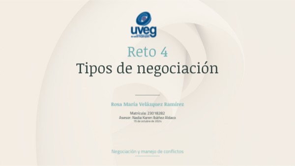 ¿Cuál es tu estilo de negociación?Después de realizar el Test indicado, mi resultado fue que mi estilo de negociación es el adaptativo. Para mi caso, considero que este estilo resultó debido a que prefiero que, en medida de lo posible todo se lleve a un acuerdo para así, también en la medida de lo posible se evite algun conflicto o desacuerdo en un futuro, también poder reconocer que cometemos errores, y es más sano poder ir ajustando los proyectos, tareas y así trabajar de mejor manera, siempre prevalenciendo la comunicación. De igual manera, considero que todas las formas de negociación son buenas, solamente saber utilizar las mejores en cada uno de los momentos o circunstancias, y siempre o en la medida de lo posible ver por el bien común, aunque para algunas personas no les resulte adecuado, como por ejemplo, el competitivo, pero si es para sacar una venta, un proyecto y se tienen los argumentos o todos los elementos del porqué es mejor una decisión que otra, es muy válido utilizarla.