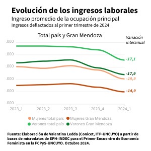 Fuente: Elaboración de Valentina Ledda (Conicet, ITP-UNCUYO) a partir de bases de microdatos de EPH-INDEC para el Primer Encuentro de Economía Feminista en la FCPyS-UNCUYO. Octubre 2024.