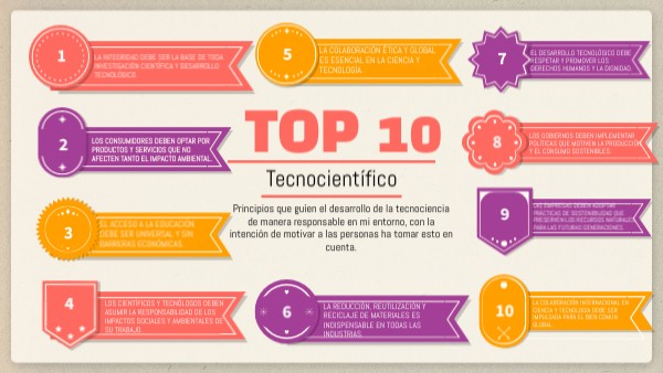Principios que guíen el desarrollo de la tecnociencia de manera responsable en mi entorno, con la intención de motivar a las personas ha tomar esto en cuenta.