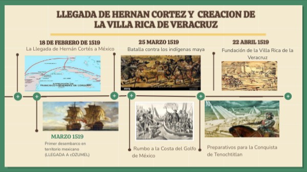 Evento principal: Salida de CubaFecha: 18 de febrero de 1519 Hernán Cortés sale de Cuba con 11 barcos, 600 hombres, 16 caballos y artillería. Velázquez intentó cancelar la expedición, pero Cortés zarpó rápidamente.