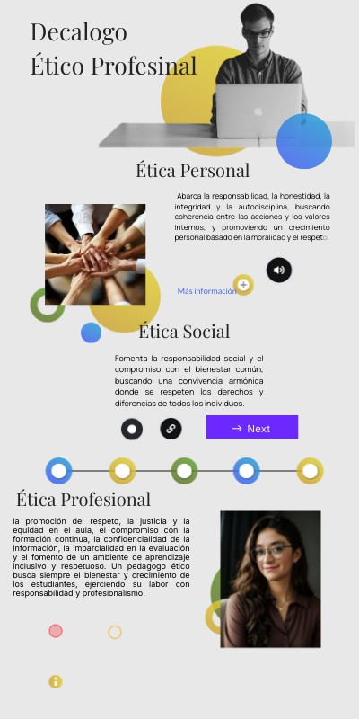 Ética Profesional (basado en el código ético de pedagogía) Compromiso con el aprendizaje: Fomentar el desarrollo integral de los estudiantes, estimulando su creatividad y autonomía. Confidencialidad: Respetar la privacidad de la información personal y académica de estudiantes y colegas. Actualización continua: Mantenerme en constante formación para ofrecer la mejor calidad educativa. Ética en la evaluación: Realizar evaluaciones justas y objetivas, adaptadas a las capacidades individuales de cada estudiante.