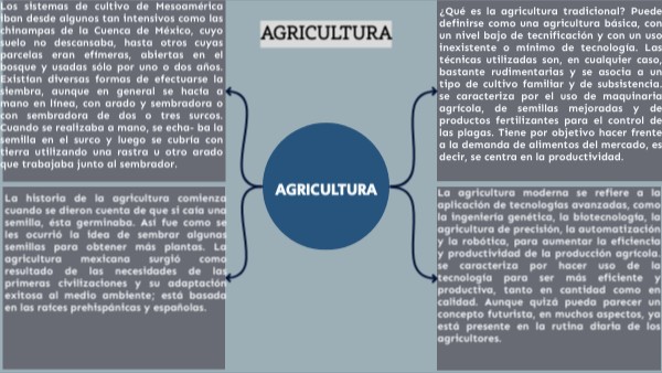 La historia de la agricultura comienza cuando se dieron cuenta de que si caía una semilla, ésta germinaba. Así fue como se les ocurrió la idea de sembrar algunas semillas para obtener más plantas. La agricultura mexicana surgió como resultado de las necesidades de las primeras civilizaciones y su adaptación exitosa al medio ambiente; está basada en las raíces prehispánicas y españolas.