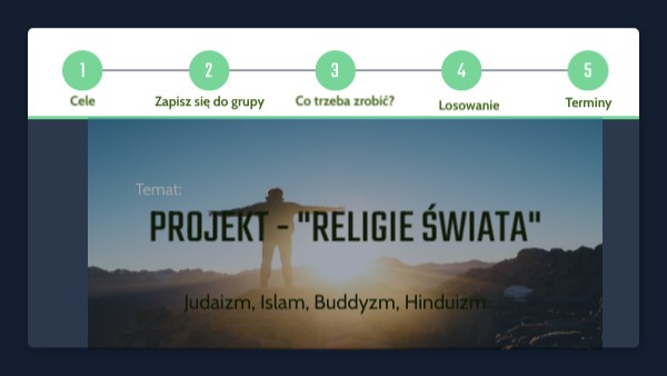 - wywiązanie się z przygotowania pracy i zawartych w nich informacji (czas powstania religii, kim był założyciel, pojęcie Boga, miejsce modlitwy, święte księgi, główne święta, podstawy wiary, dzień święty, symbole, ciekawostki z życia codziennego wyznawców)