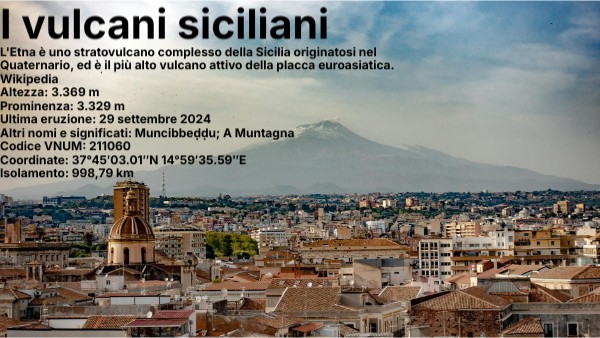 L'Etna è uno stratovulcano complesso della Sicilia originatosi nel Quaternario, ed è il più alto vulcano attivo della placca euroasiatica. Wikipedia