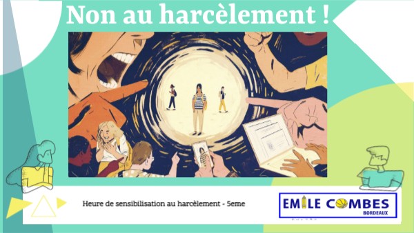 Le harcèlement se définit comme une violence répétée qui peut être verbale, physique ou psychologique. Cette violence se retrouve au sein de l’école. Elle se retrouve aussi sur internet et les réseaux sociaux: c'est du CYBER-HARCELEMENTElle est le fait d’un ou de plusieurs élèves à l’encontre d’une victime qui ne peut se défendre (attaques sur l’apparence physique, le sexe, le handicap, un centre d’intérêt original, etc.).