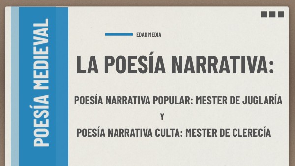 POESÍA NARRATIVA POPULAR: MESTER DE JUGLARÍA POESÍA NARRATIVA CULTA: MESTER DE CLERECÍA