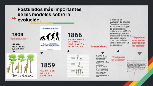 El modelo de evolución de Jean Baptiste Lamarck, conocido como "lamarckismo", fue propuesto en su obra "Philosophie Zoologique", publicada en 1809. Lamarck planteaba que los organismos evolucionan a través de la herencia de características adquiridas durante su vida.