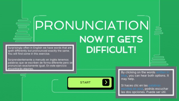 Surprisingly often in English we have words that are spelt differently but pronounced exactly the same. You will find some in this exercise. Sorprendentemente a menudo en inglés tenemos palabras que se escriben de forma diferente pero se pronuncian exactamente igual. En este ejercicio encontrarás algunas.