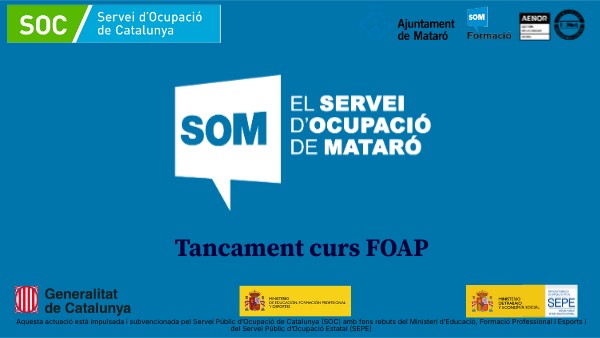 La demanda d’ocupació (si no s’ha reactivat durant el curs) la teniu suspesa. Per poder rebre ofertes de feina o fer altres cursos, cal reactivar-la a través del SOC. També per continuar cobrant la prestació!