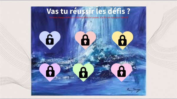 Termine chaque défis pour déverrouiller le suivant, à la fin une surprise t'attend!