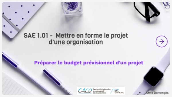 Dans le cadre de votre PT, vous devez réaliser un premier budget prévisionnel (Moodle : S1.01-Groupe n°- Budget prévisionnel). À déposer sur MOODLE dans le dossier S1.01 avant le 06/12/2024 – 18h - Sous la dénomination 23-24-BUDGET- Nom du PT ou du pôle Ex : 23-24-BUDGET- DEFIS CAMPUS Vous me le présenterez, oralement, en groupe avec les devis ou tarifs apportant la preuve de vos dépenses prévisionnelles lors de la prochaine séance (semaine 50) La note obtenue sera prise en compte dans la moyenne de la SAE