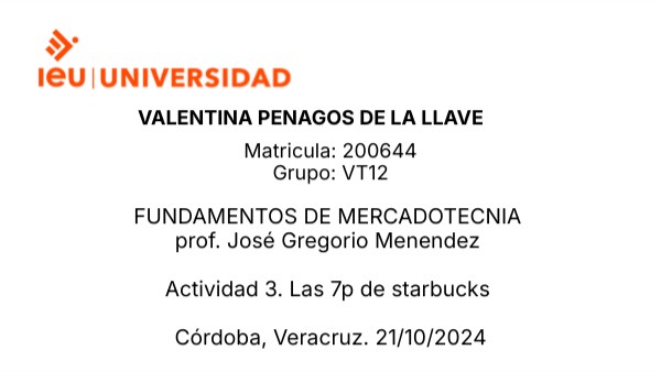 FUNDAMENTOS DE MERCADOTECNIA prof. José Gregorio Menendez Actividad 3. Las 7p de starbucks Córdoba, Veracruz. 21/10/2024