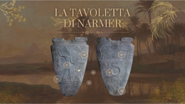 Sulla tavoletta è rappresentato il re che unificò Alto e Basso Egitto (ca 3000 a.C.) e diede inizio alla I dinastia, è rappresentato con la corona dell'Alto Egitto mentre afferra per i capelli un suo nemico prima di ucciderlocon il suo sciettro.