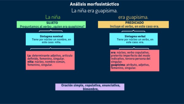 Oración simple, copulativa, enunciativa, bimembre,