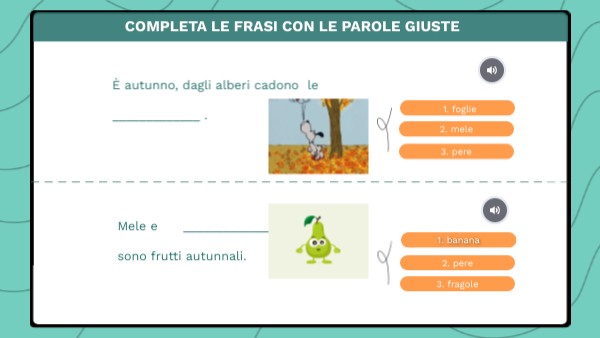 COMPLETA LE FRASI CON LE PAROLE GIUSTE