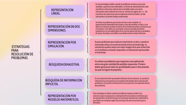 Es una representación que puede utilizarse de dos maneras: 1) cuando la información se encuentra en los estados intermedios de la solución del problema y 2) cuando la información se encuentra en la respuesta misma del problema.
