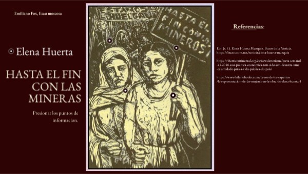 Edt. (s. f.). Elena Huerta Muzquiz. Buzos de la Noticia. https://buzos.com.mx/noticia/elena-huerta-muzquiz https://thetricontinental.org/es/newsletterissue/carta-semanal -41-2018-essa-politica-economica-tem-sido-um-desastre-uma -calamidade-para-a-vida-publica-do-pais/ https://www.hilariobooks.com/la-voz-de-los-expertos /la-representacion-de-las-mujeres-en-la-obra-de-elena-huerta-1