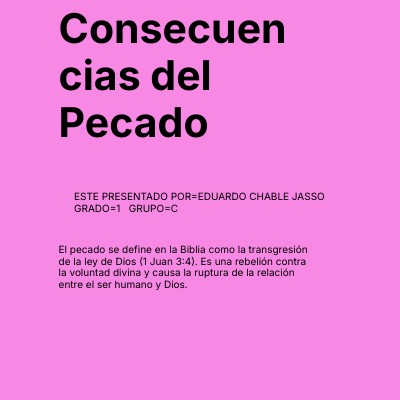 Consecuencias del Pecado Muerte Física: El pecado trajo la muerte física al mundo (Génesis 3). Antes de la caída, la humanidad vivía en perfecta comunión con Dios, pero el pecado introdujo la muerte como resultado de la desobediencia. Muerte Espiritual: Es la separación del ser humano de Dios. Cuando Adán y Eva pecaron, fueron expulsados del Edén, simbolizando esta ruptura. La muerte espiritual implica vivir alejado de la vida y la paz que solo Dios puede dar. Muerte Eterna: La muerte eterna se refiere al castigo final y definitivo para aquellos que mueren en su pecado, descrito en Apocalipsis 20:14 como la "segunda muerte", que es el alejamiento eterno de la presencia de Dios. El Salario del Pecado San Pablo afirma en Romanos 6:23 que "el salario del pecado es la muerte". Esta declaración significa que el pecado trae consigo consecuencias justas. Al igual que un trabajador recibe un salario por su esfuerzo, el pecado "paga" con la muerte. Esta muerte es la consecuencia lógica de vivir en rebeldía contra Dios, que es la fuente de toda vida. Separación de la Vida Eterna: El pecado no solo resulta en muerte física, sino también en la pérdida de la vida eterna con Dios. Vivir en pecado significa rechazar la oferta de Dios y, por lo tanto, enfrentar la separación eterna de Su presencia. Esperanza en Cristo A pesar de las consecuencias del pecado, Pablo continúa diciendo en el mismo versículo que "el don de Dios es la vida eterna en Cristo Jesús, nuestro Señor". Esto indica que, aunque el pecado merece la muerte, Dios ofrece un camino de redención a través de Jesucristo. Al aceptar a Cristo, se puede recibir perdón, reconciliación y la promesa de vida eterna, superando así las consecuencias del pecado. un camino de redención a través de Jesucristo. Al aceptar a Cristo, se puede recibir perdón, reconciliación y la promesa de vida eterna, superando así las consecuencias del pecado.