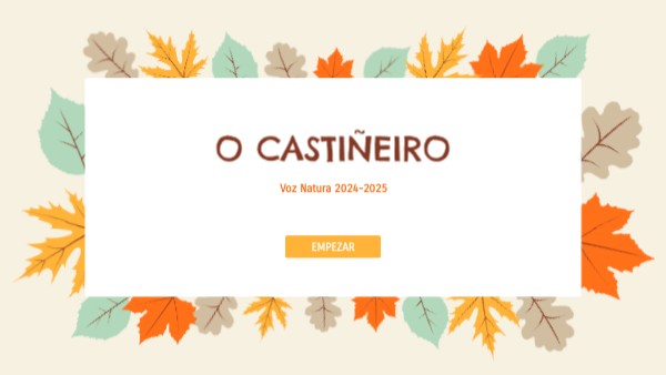 NA PRIMAVERA SAEN AS FLORES DO CASTIÑEIRO. LOGO SAEN OS OURIZOS. DENTRO DOS OURIZOS HAI COMO MÁXIMO 3 CASTAÑAS. O OURIZO CAE AO CHAN NO OUTONO.
