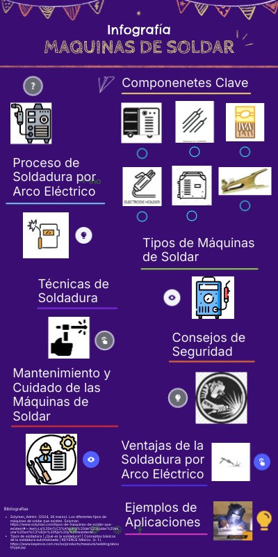 - Solyman_Admin. (2024, 26 marzo). Los diferentes tipos de máquinas de soldar que existen. Solyman. https://www.solyman.com/tipos-de-maquinas-de-soldar-que-existen/#:~:text=La%20m%C3%A1quina%20de%20soldar%20es,una%20uni%C3%B3n%20fija%20y%20resistente.