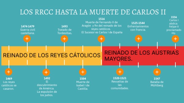 Línea del tiempo desde los RRCC hasta la muerte de Carlos II (1700)