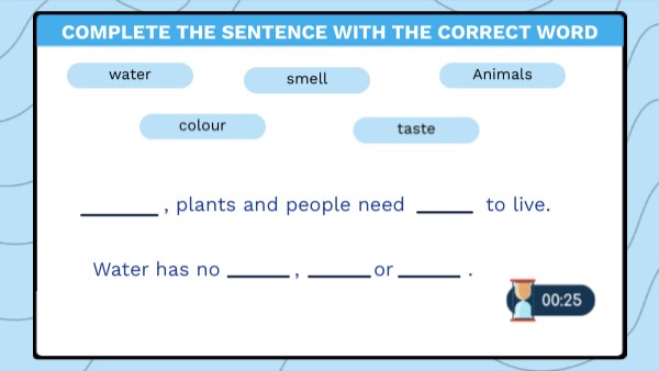 Complete the sentence (water)