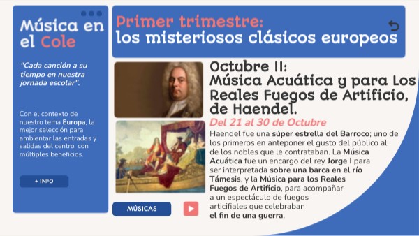 Octubre II: Música Acuática y para Los Reales Fuegos de Artificio, de Haendel.