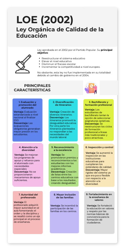 Ventaja: Los estudiantes de bachillerato tenían la opción de seleccionar asignaturas optativas. Desventaja: Se reestructuran los ciclos de formación profesional a líneas más tradicionales y poco atractivas.