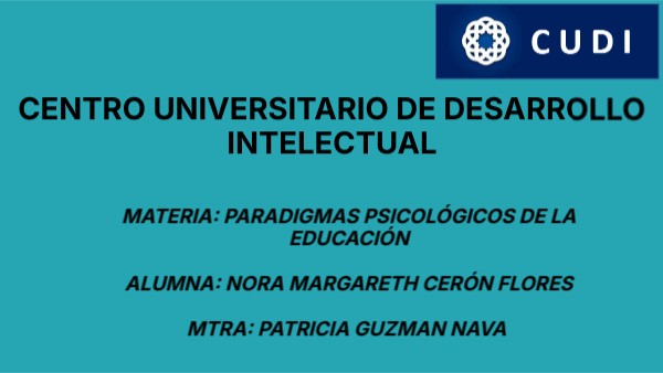 MATERIA: PARADIGMAS PSICOLÓGICOS DE LA EDUCACIÓN ALUMNA: NORA MARGARETH CERÓN FLORES MTRA: PATRICIA GUZMAN NAVA