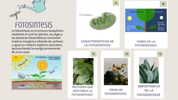 La fotosíntesis es el proceso bioquímico mediante el cual las plantas, las algas y las bacterias fotosintéticas convierten materia inorgánica (dióxido de carbono y agua) en materia orgánica (azúcares), aprovechando la energía proveniente de la luz solar.