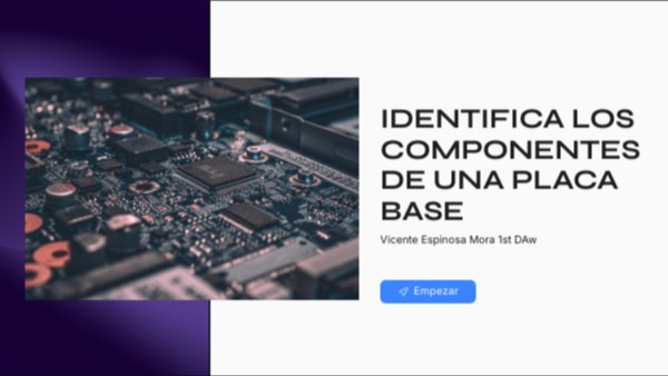 una plantilla interactiva de "Etiquetado" o "Juego de preguntas". Una imagen de una placa base. puntos interactivos en los componentes más importantes. cada punto para mostrar una pregunta o una pista sobre el componente en cuestión.