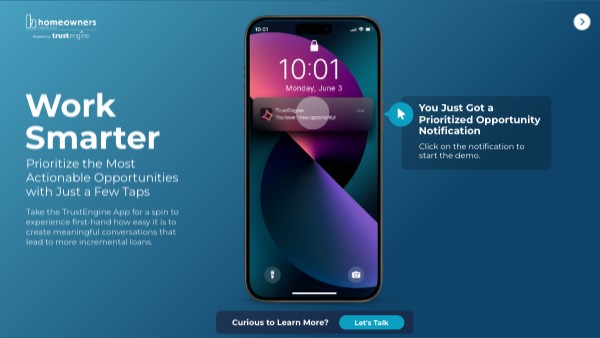 Take the TrustEngine App for a spin to experience first-hand how easy it is to create meaningful conversations that lead to more incremental loans.