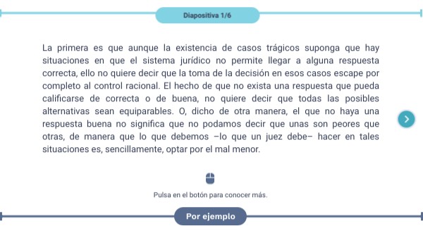 La primera es que aunque la existencia de casos trágicos suponga que hay situaciones en que el sistema jurídico no permite llegar a alguna respuesta correcta, ello no quiere decir que la toma de la decisión en esos casos escape por completo al control racional. El hecho de que no exista una respuesta que pueda calificarse de correcta o de buena, no quiere decir que todas las posibles alternativas sean equiparables. O, dicho de otra manera, el que no haya una respuesta buena no significa que no podamos decir que unas son peores que otras, de manera que lo que debemos –lo que un juez debe– hacer en tales situaciones es, sencillamente, optar por el mal menor.