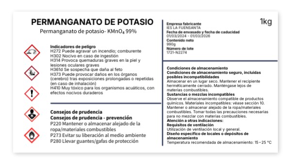 Empresa fabricante IES LA FUENSANTA Fecha de envasado y fecha de caducidad 01/03/2024 - 01/03/2026 Contenido neto 990g Número de lote 1721-N2274