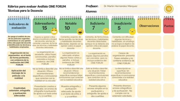 Rúbrica para evaluar Análisis CINE FORUMTécnicas para la Docencia