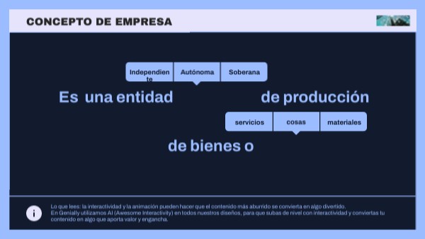 Lo que lees: la interactividad y la animación pueden hacer que el contenido más aburrido se convierta en algo divertido. En Genially utilizamos AI (Awesome Interactivity) en todos nuestros diseños, para que subas de nivel con interactividad y conviertas tu contenido en algo que aporta valor y engancha.