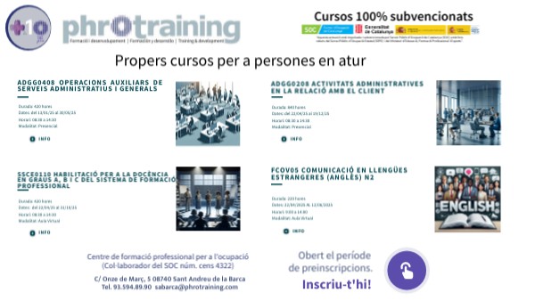 Propers Cursos per a persones en atur