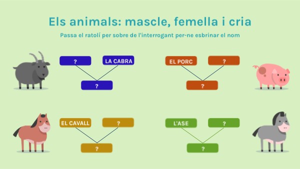 Els animals: mascle, femella i cria