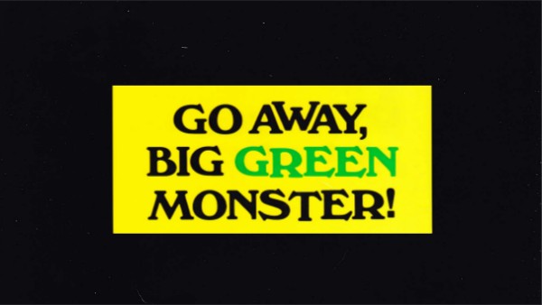 BIGGREEN MONSTER HAS TWO BIG YELLOW EYES,